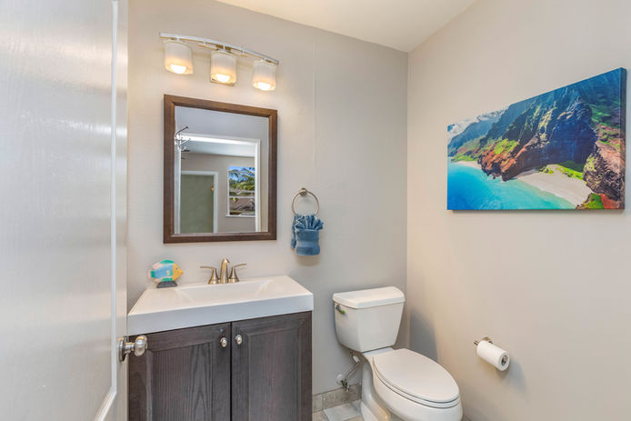Third Bedroom (Upper Level): Queen bed with memory foam mattress and a beautifully updated half bathroom.